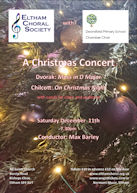 ![]() | 14th December, 2002 Vaughan Williams: Fantasia on Christmas Carols Conducted by Nicholas Jenkins Soloists: Baritone: Robert Rice Piano/Organ Tony Baldwin and St Mary’s R.C.Primary School Choir | Vaughan Williams: Fantasia on Christmas Carols Pergolesi: Magnificat Buxtehude: Das Neugeborene Kindelein Plus Carols for choir and audience Concert start: 7.30pm Holy Trinity Church, Southend Crescent, Eltham, SE9 2SD |