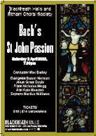 ![]() | Saturday 19th March, 2005 St John Passion Conducted by Nicholas Jenkins Soloists: Evangelist: Tom Raskin Christus: Sam Evans Soprano: Sarah Leonard Countertenor: David Bates Tenor: Ben Alden Bass (& Pilate): Paul Reeves Peter: Geoff Howard Officer: Adam Higgins Maid: Julia Lloyd Servant: Rod Tutt with the Eltham Choral Society Orchestra Organ: Chris Eastwood | J.S. Bach: St John Passion (Sung in English – New Novello Edition, translation by Neil Jenkins) Concert start: 7.30pm Holy Trinity Church, Southend Crescent, Eltham, SE9 2SD |