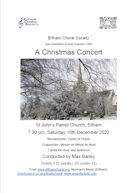 ![]() | Saturday 10th December, 2005 The Christmas Concert Conducted by Nicholas Jenkins Soloists: Tenor: Eliot Alderman Baritone: Bruno Santino and soloists from the choir also featuring St Thomas More Primary School Choir Piano/Organ Chris Eastwood | Handel – Messiah (part I) Carols for choir and Audience Concert start: 7.30pm Holy Trinity Church, Southend Crescent, Eltham, SE9 2SD |