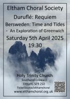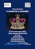 ![]() | Saturday 12th December 2015 A Ceremony of Carols Conducted by Peter Asprey Soloists: Soprano: Soprano Soloists: Leonie Macaulay, Joanne Marshman, Lucy Parratt Organ: Charles Andrews | Britten: A Ceremony of Carols Handel: Coronation Anthems and carols for choir and audience Concert start: 7.30pm Holy Trinity Church, Southend Crescent, Eltham, SE9 2SD |